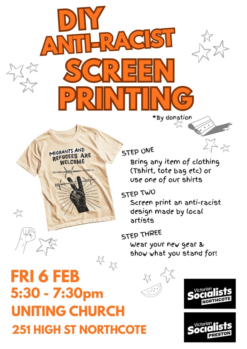 Get along to Victorian Socialists Northcote & Preston's DIY screen-printing event!
